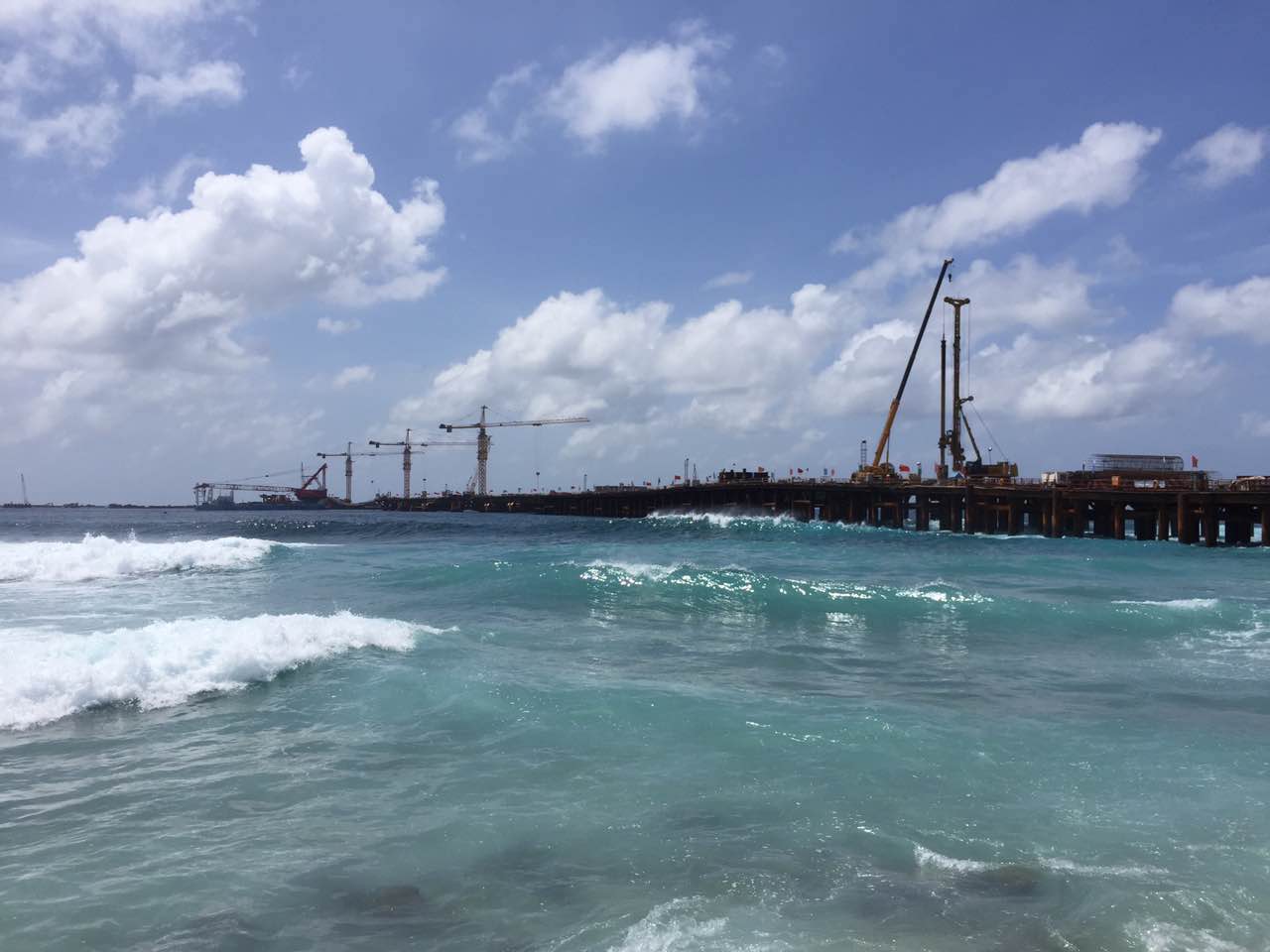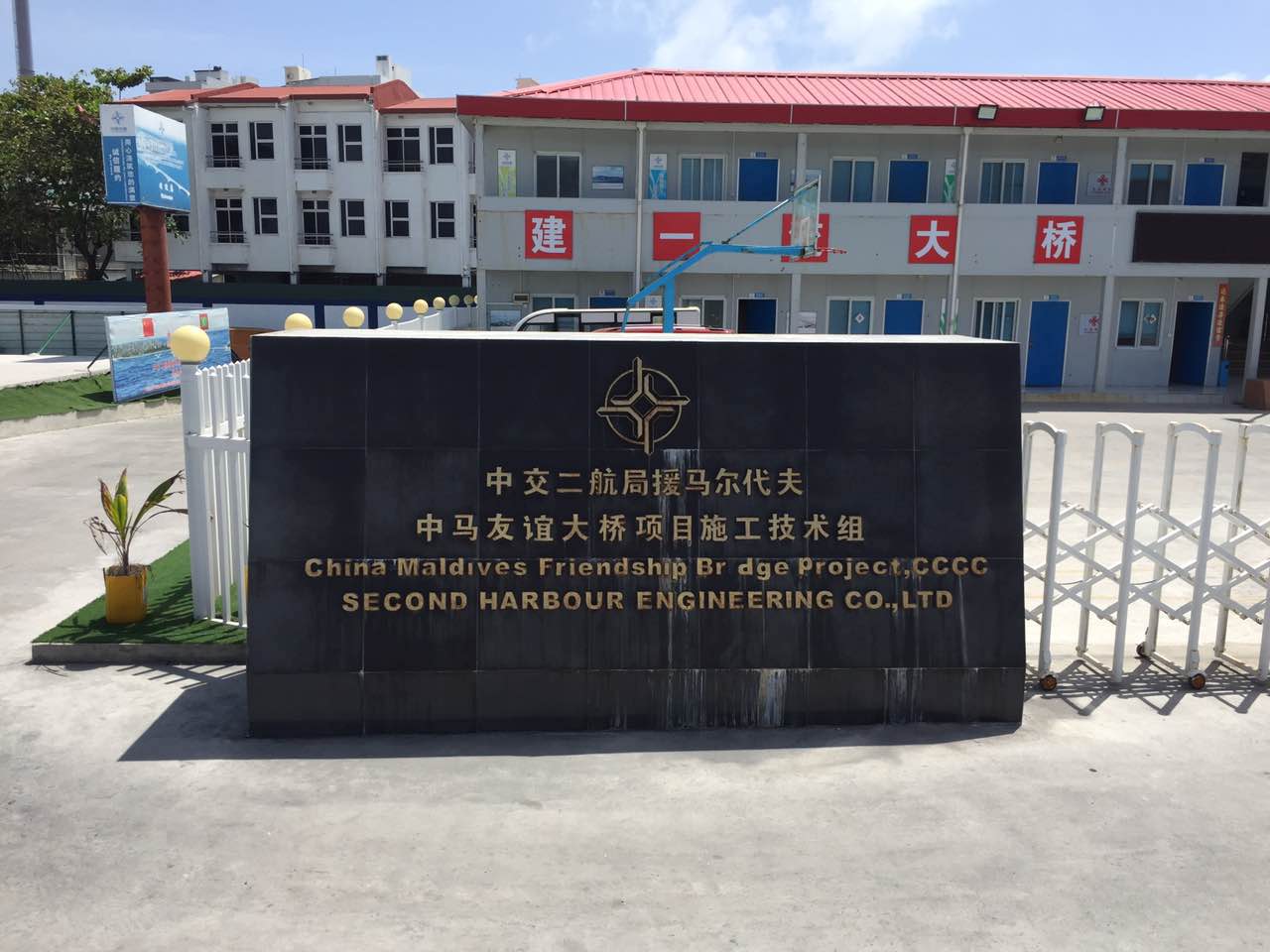 中馬友誼大橋位于馬爾代夫北馬累環(huán)礁,連接環(huán)礁上馬累島、機場島和胡魯馬累島三個島嶼,是馬爾代夫最重要的島嶼連接線工程。大橋主跨180米,主橋長760米,包括引橋、引堤全長2.1公里。 馬爾代夫中馬友誼大橋是2014年習近平主席訪馬期間雙方領導人共同商定的大型工程,是踐行“一帶一路”倡議的重點工程,也是我國援外工程改革的第一個試點項目和第一個援外資金與國家優(yōu)惠貸款組合項目,對促進中馬兩國關系以及促進馬方社會經(jīng)濟發(fā)展具有重大意義。