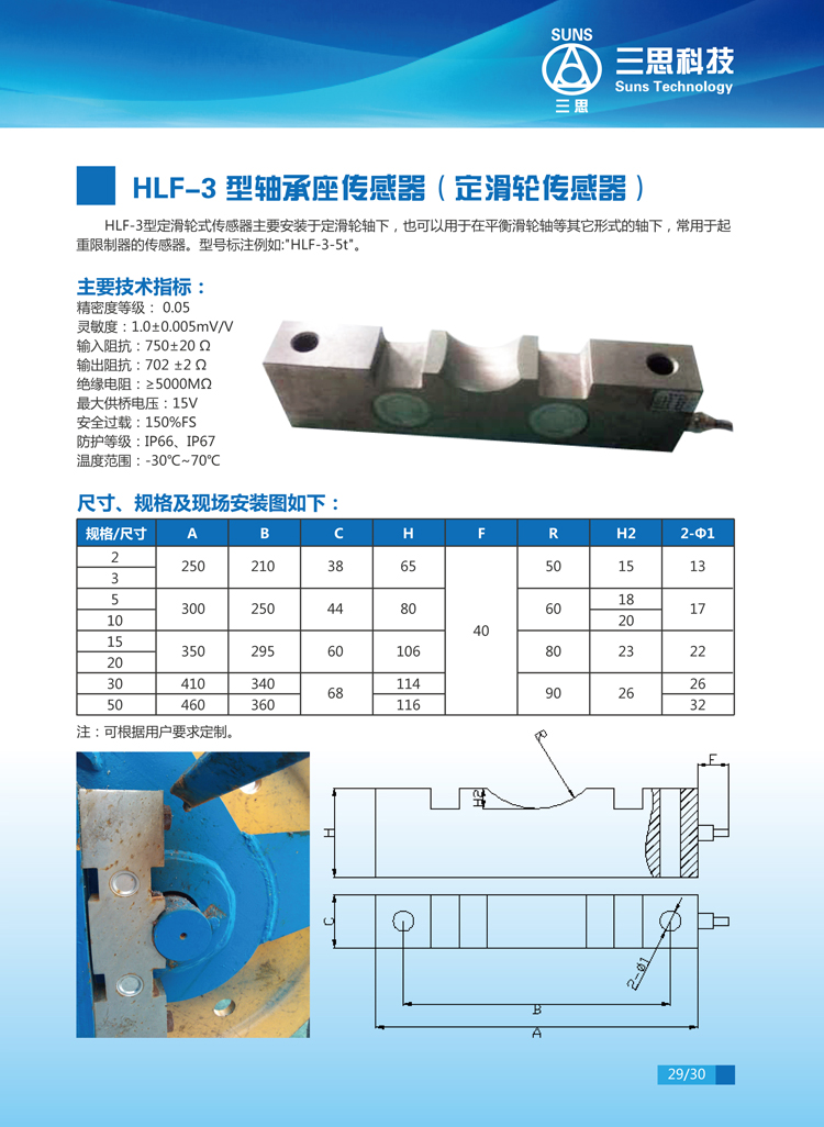 產(chǎn)品詳情 功能介紹 產(chǎn)品優(yōu)勢 參數(shù)/型號 包裝清單 產(chǎn)品詳情 HLF-3型定滑輪式傳感器主要安裝于定滑輪軸下,也可以用于在平衡滑輪軸等其他形式的軸下,常用于起重限制器的傳感器。 功能介紹 產(chǎn)品優(yōu)勢 參數(shù)/型號 包裝清單