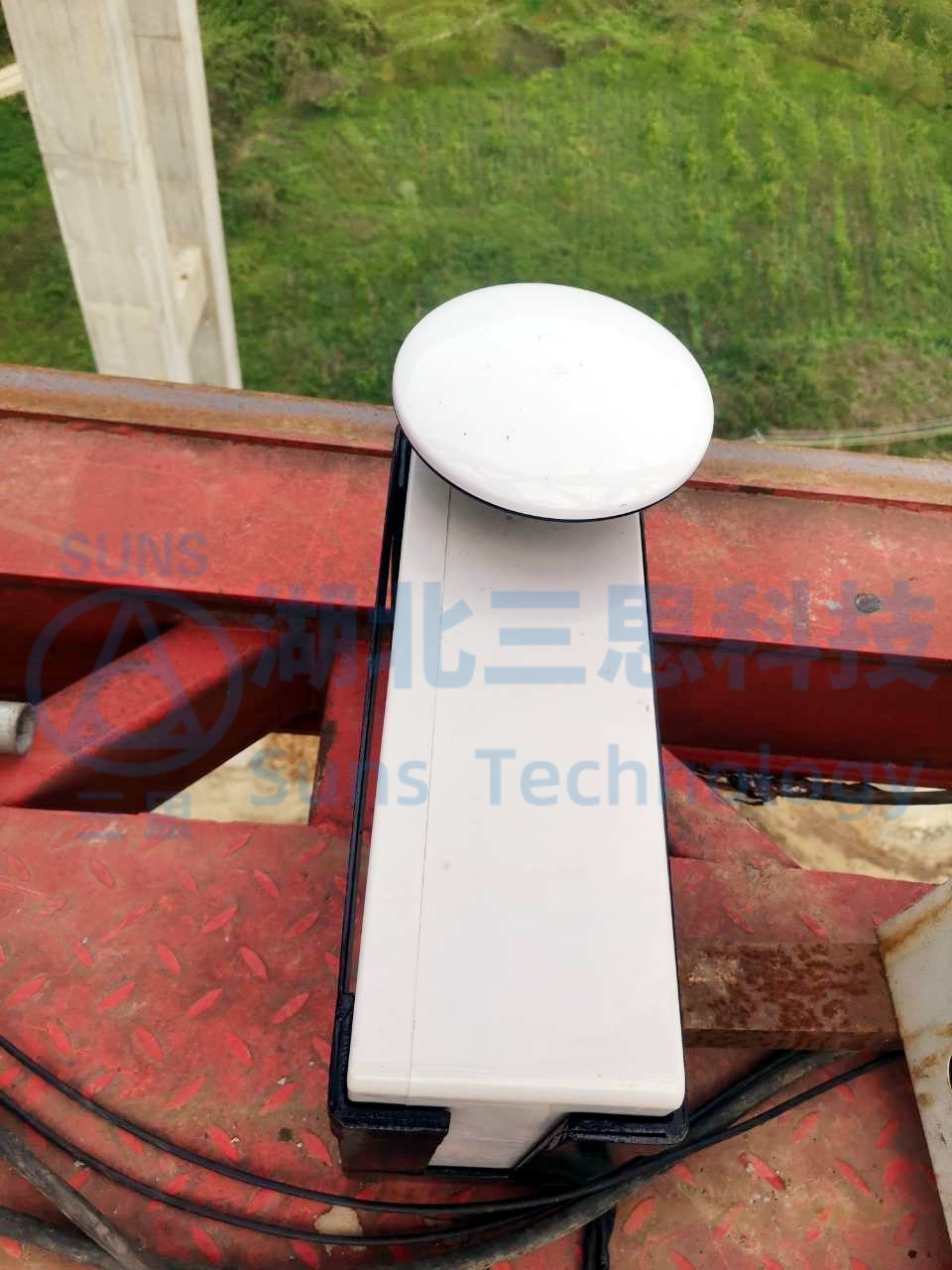 該項目采用的是架橋機安全監(jiān)控管理系統(tǒng)帶智能監(jiān)測系統(tǒng),通過在設(shè)備上安裝GNSS北斗定位基站來實時監(jiān)測架橋機前后高差及平行狀態(tài)。