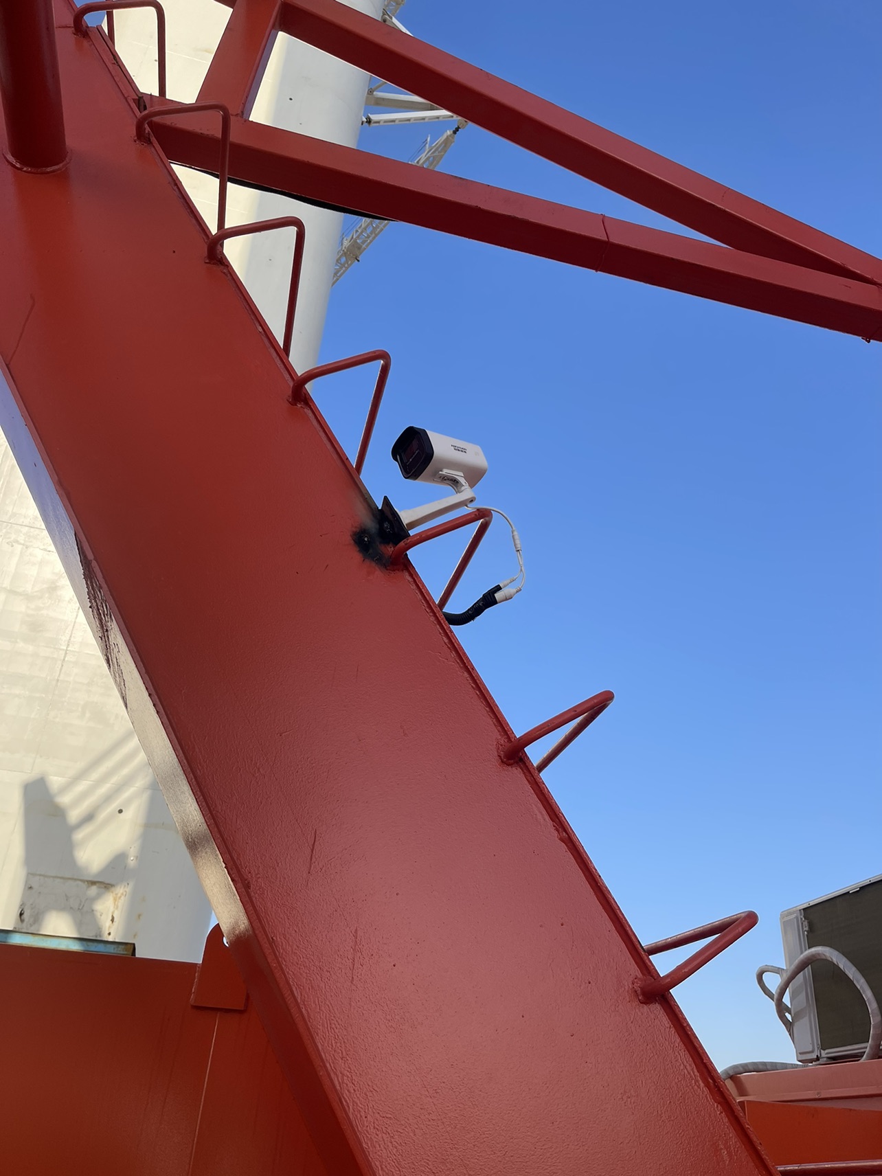 桅桿吊起升卷揚、變幅卷揚各裝1路攝像頭,用于監(jiān)控現(xiàn)場電機卷揚;桅桿吊桿頭裝一路球機,用于監(jiān)控吊裝區(qū)域。監(jiān)控設(shè)備的視頻監(jiān)控顯示器放置于司機室內(nèi),可以讓駕駛員全方位掌握桅桿吊的實時運行狀況,提高了操作的安全性。