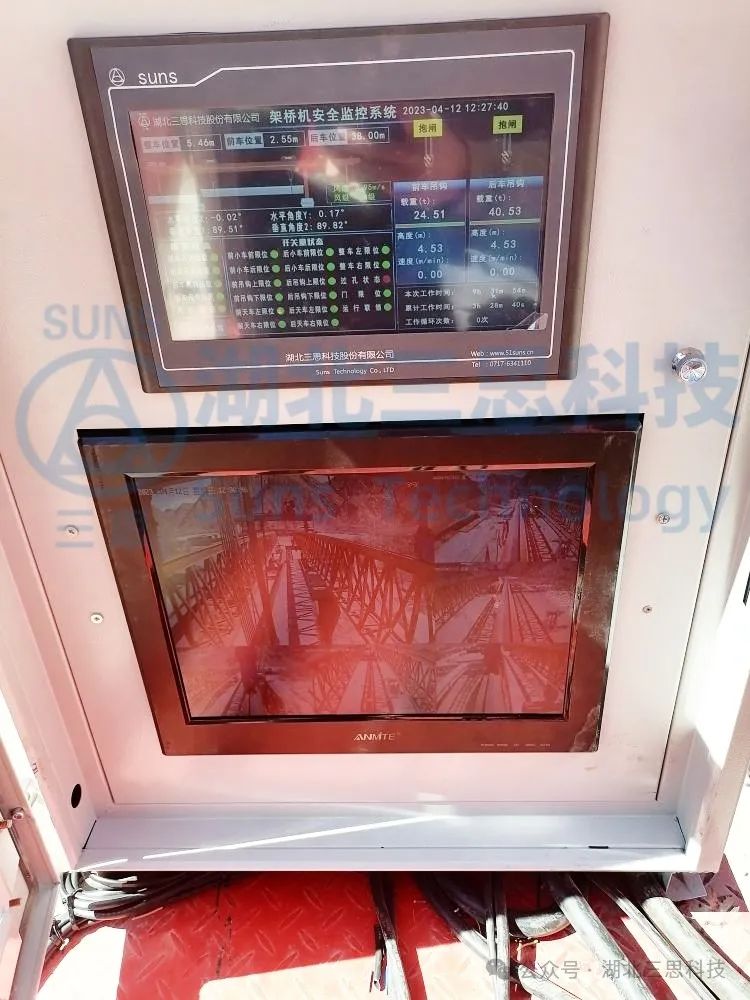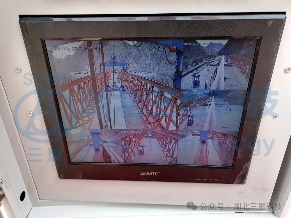 視頻監(jiān)控系統(tǒng)監(jiān)測(cè)架橋機(jī)的過孔狀態(tài)、架梁狀態(tài)、運(yùn)梁車同步狀態(tài),視頻顯示器放置于駕駛室中或者主機(jī)電箱內(nèi),給駕駛員帶來更加寬廣的操作視野,提高了架橋機(jī)操作便捷性。