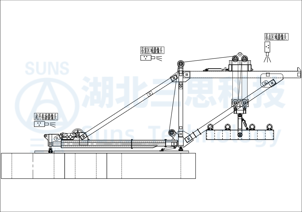 視頻監(jiān)控系統(tǒng)監(jiān)測橋面吊的卷揚狀態(tài)、吊點區(qū)域、吊裝區(qū)域,視頻顯示器放置于駕駛室中或者主機電箱內(nèi),給駕駛員帶來更加寬廣的操作視野,提高了橋面吊操作便捷性。
