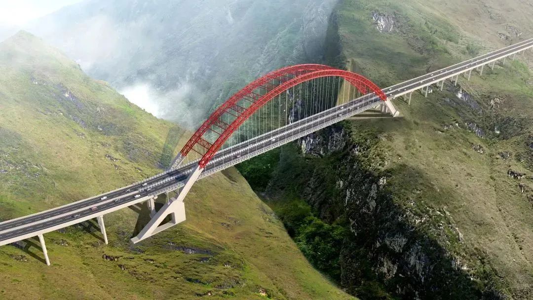 上烏角特大橋位于四川省涼山彝族自治州雷波縣境內(nèi),為鋼管混凝土中承式拱橋。上烏角特大橋主橋為332.5m的中承式鋼管混凝土拱橋,拱圈首創(chuàng)采用左右不對稱高低拱設(shè)計,左側(cè)拱肋凈跨徑310m,右側(cè)拱肋凈跨徑306m,分別由4根φ800mm的鋼管混凝土弦管組成,內(nèi)灌C60混凝土。大橋纜索吊裝系統(tǒng)跨徑組合布置為203m+395.5m+297m,最高塔高155m,設(shè)計吊重為90t。