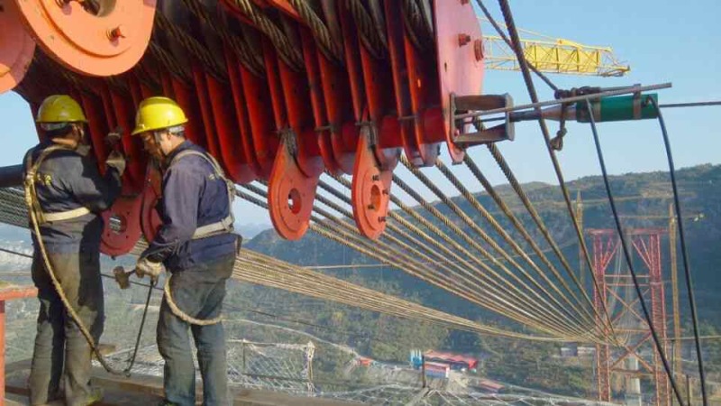 纜索起重機(jī)是指以柔性鋼索作為大跨距架空承載構(gòu)件,供懸吊重物的載重小車(chē)在承載索上往返運(yùn)行,具有垂直運(yùn)輸和水平運(yùn)輸功能。